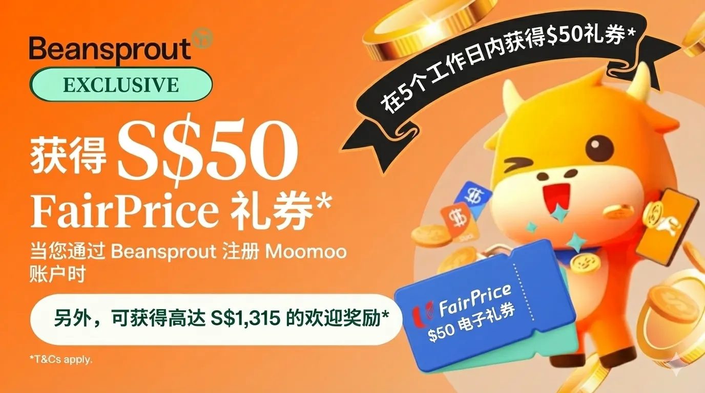 独家 Moomoo 优惠:通过 Beansprout 注册可获 S$50 FairPrice 礼券,另享最高 S$1,315 新客奖励